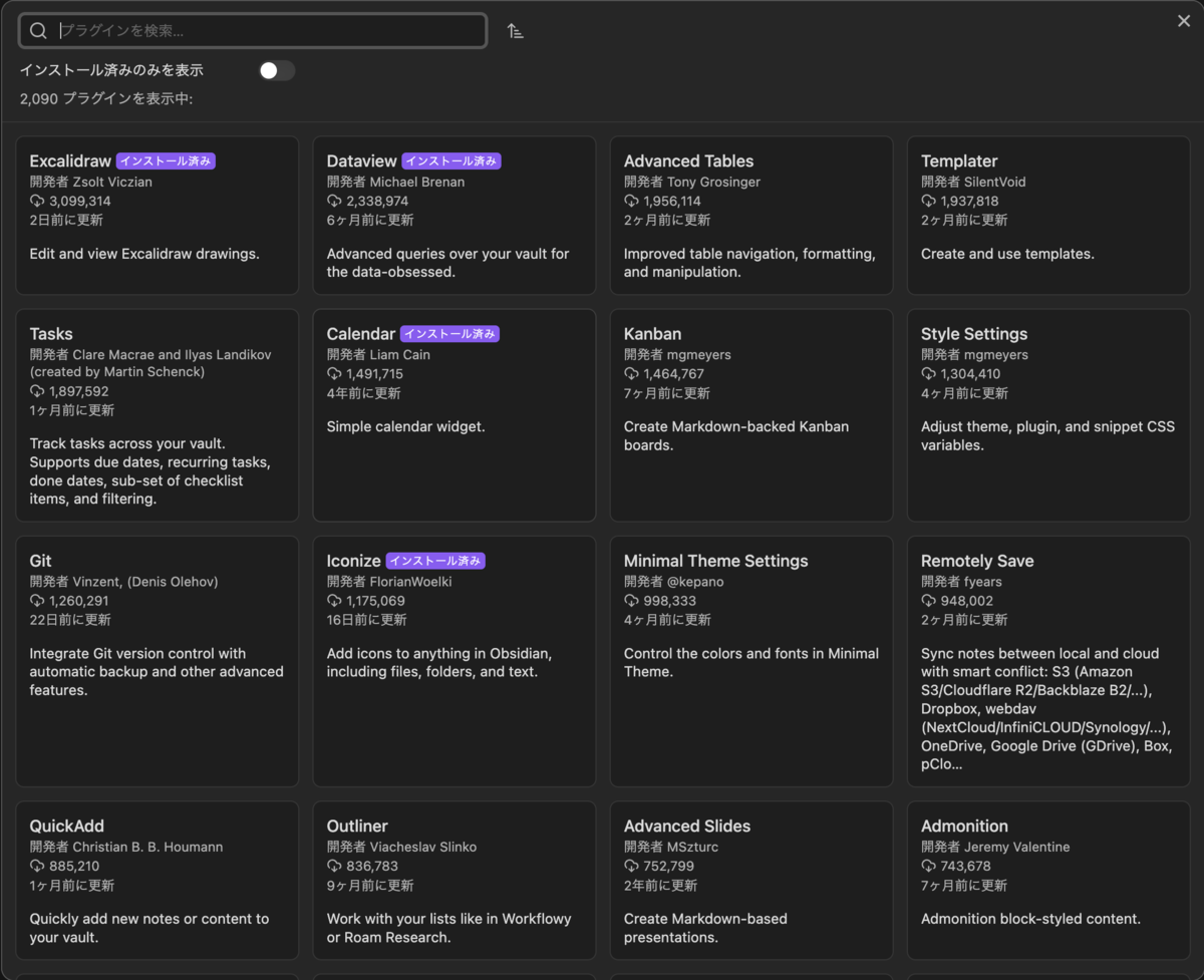 その点、Obsidianはボトムアップ方式で必要な機能があれば豊富なプラグインを用いて導入したり、必要な時には自分でプラグインを作ったりして自分で"育て上げる"ことが出来ます。
